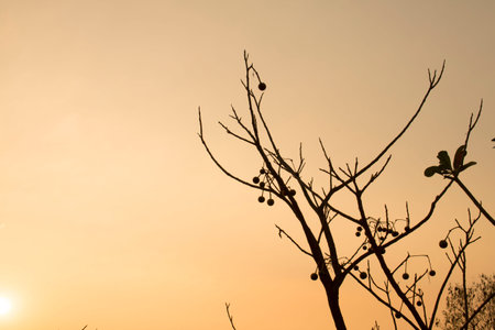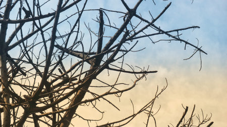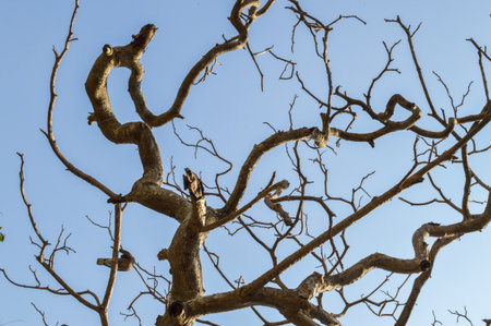 Leafless tree branches of winter season, season specific image of nature. Image shot against Sun, at Kolkata, Calcutta, West Bengal, India