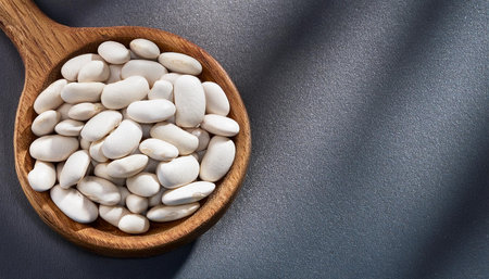 A close-up of white kidney beans displays their glossy, smooth surface against a textured backdrop, perfect for illustrating healthy eating and versatile cooking.