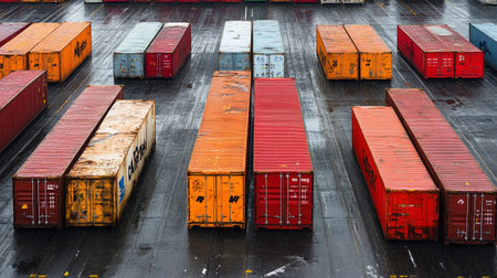 Vivid rows of colorful shipping containers neatly organized in a vibrant storage yard