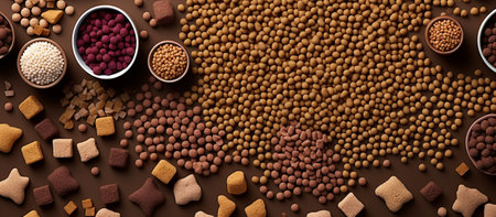 A playful arrangement of wholesome dog treats and snacks, offering a feast of colors and textures for pet lovers