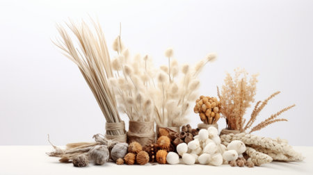 a collection of dried plants and flowers arranged on a white background.igh resolution AI generated