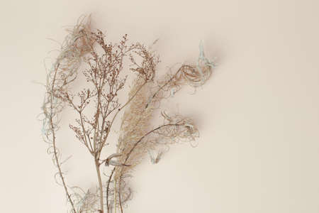 Dry reeds pampas grass on beige neutral background