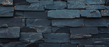Close-up of dark stone wall texture, rugged surface. Natural architecture and design concept