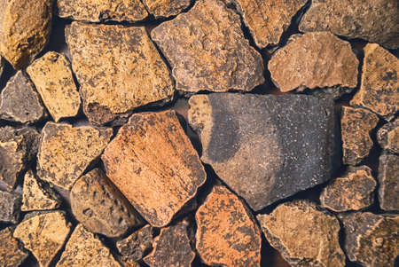 A close-up image of a layered arrangement of natural stones featuring various textures and colors, ideal for rustic backgrounds in design projects and creative works.