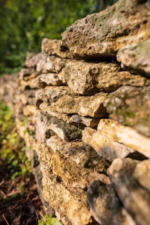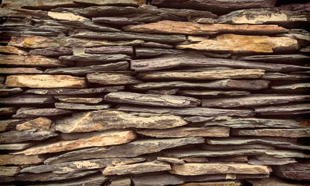 Rustic ancient handcraft tile stack stone wall as background in Italy.