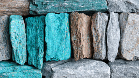 A harmonious arrangement of rugged blue and gray stones forms a captivating mosaic, evoking a rustic charm ideal for enhancing architectural and creative spaces.
