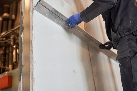 worker applying putty on the wall