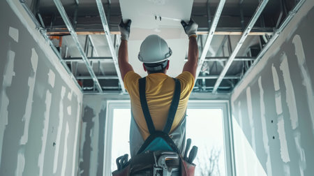 Construction worker installation ceiling work