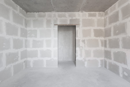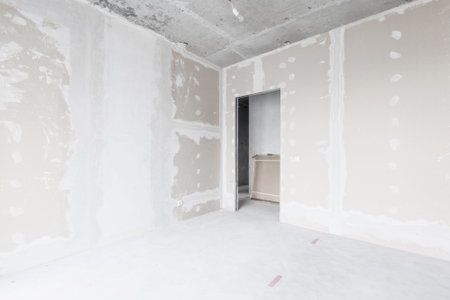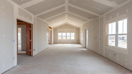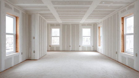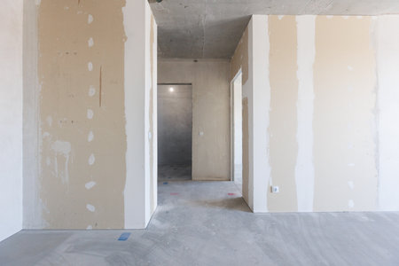 Drywall wall home interior decoration at construction site with copy space add text