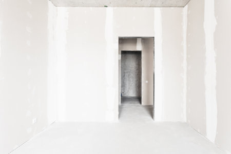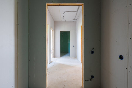 Interior construction of housing with drywall installed door for a new home before installing