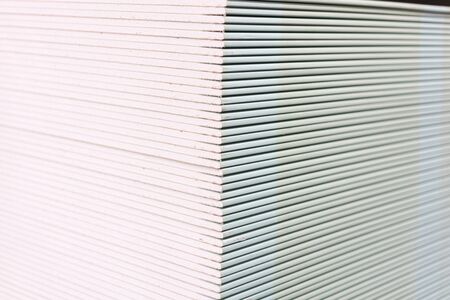The stack of gypsum board preparing for construction. Gypsum plasterboard in the pack.