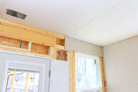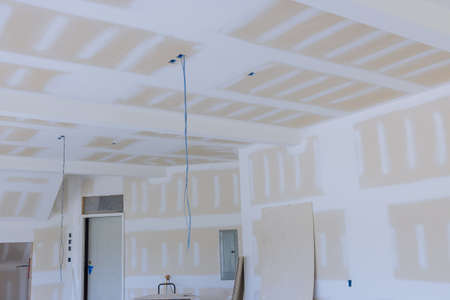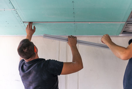 ceiling gypsum board installation at construction site