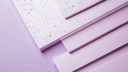 A blend of soft lavender shades creates a tranquil atmosphere, with textured surfaces layered elegantly. The light reflects gently, enhancing the overall peaceful aesthetic and inviting tranquility.