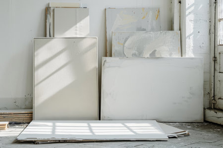 A stack of canvases leaning against the wall, each one a blank canvas for creativity AI generated