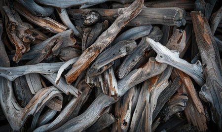 Ethereal beauty of wood forms and natural textures. The composition showcases a harmonious blend of organic shapes and textures found in nature, evoking a sense of serenity and wonder. Generative AI