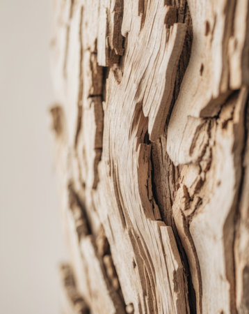 Close-up of a richly textured piece of wood, showing its intricately grain and layered structure. A study in natural beauty.