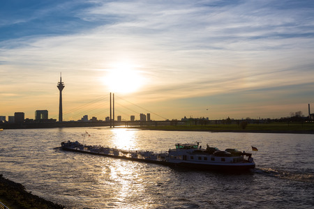 DUSSELDORF - SEP 16: Rhine river on September 16, 2014 in Dusseldorf, Germany. Dusseldorf is the capital city of the German state of North Rhine-Westphalia and centre of the Rhine-Ruhr metropolitan region with a population of 11 million people.
