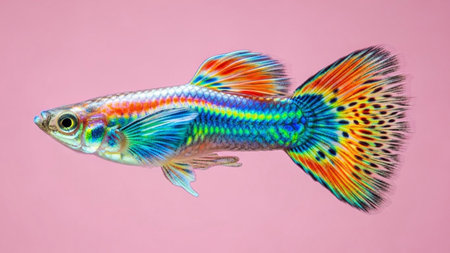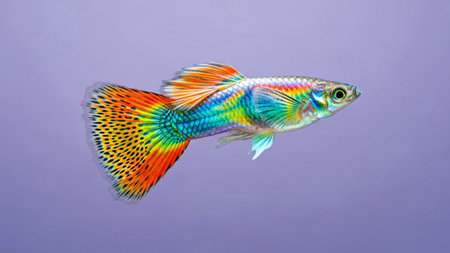 A single fish swims through swirling, vibrant ink, creating an abstract, colorful underwater world.