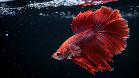 Capture the moving moment of red siamese fighting fish isolated on black background. betta fish.