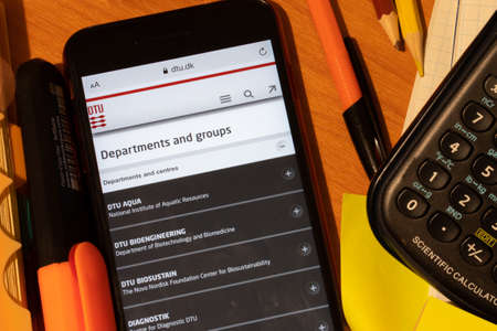 Saint-Petersburg, Russia - 10 January 2020: Phone screen with Technical University of Denmark website page. Higher education admission concept, Illustrative Editorial.