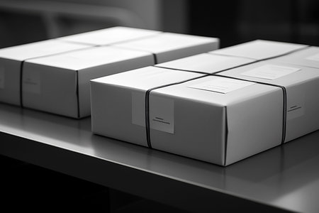 White carton boxes, postal shipment or delivery. AI generative