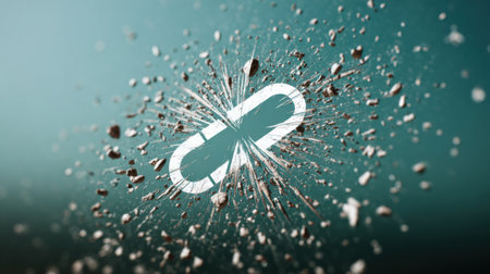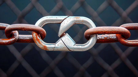 A strong chain link shatters with fragments flying outward, highlighting the power and intensity of the action in a captivating visual display.