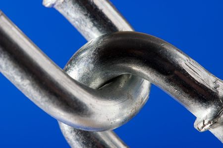 3D Metallic blue chain link with a glossy finish, symbolizing connection and unity. 3d illustration