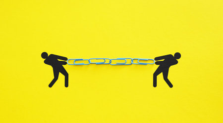 Business competition and competitive advantage. Two businessmen pulling a rope. Achieving a goal, Success, competitive opportunity