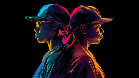 Exploring contrast and harmony in dual profile portraits highlighted with red accents
