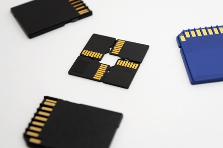 SD memory card hand removable on white Backgrounds - Close up SD memory card in fingers