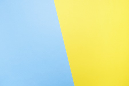 Yellow-blue or green-purple bright minimalist geometric background divided in half by a diagonal stripe. Abstract wallpaper. Colors of a Ukrainian flag. Colored paper template with place for text.