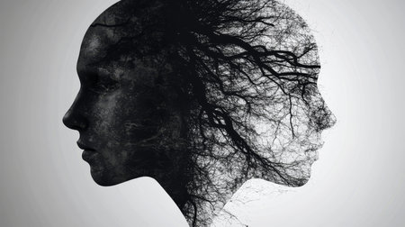 Multiple personality, identity disorder, borderline and Schizophrenia, mental health background. AI generated.