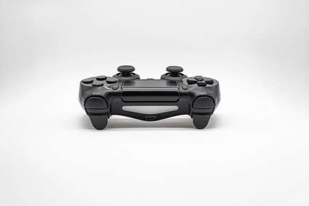 Gaming console black plastic analog controller gamepad device isolated over the white background