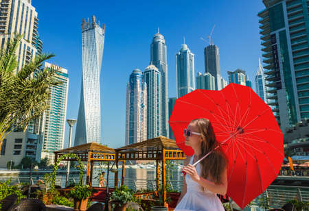 Fashionable girl enjoying a day at Dubai marina, UAE