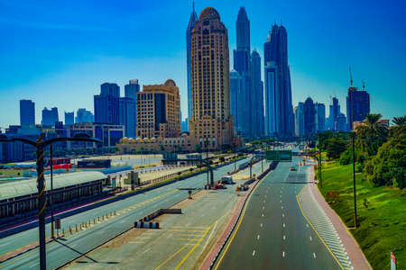 DUBAI, UAE - NOVEMBER 13: High rise buildings and streets nov 13. 2012 in Dubai, UAE. Dubai was the fastest developing city in the world between 2002 and 2008.