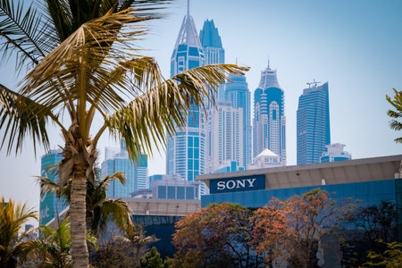 View of skyscrapers and jumeirah beach in Dubai. UAE