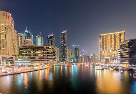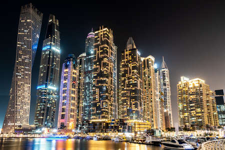 Dubai Marina at night in United Arab Emirates