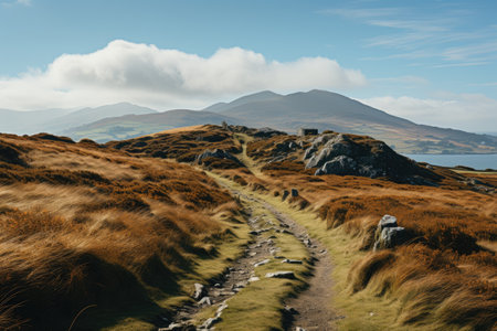 Path on top of the Slieve League Cliffs which are among the highest sea cliffs in Europe rising 1972 feet above the Atlantic Ocean - County Donegal, Ireland