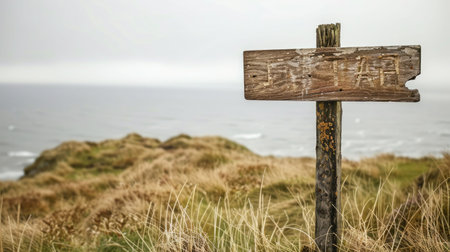 Cinematic wide shot, ultrawide 16:9 panorama. A rugged, weathered wooden signpost standing firmly on