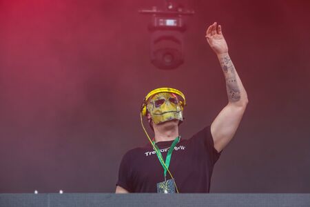 Brezje, Croatia - 20th July, 2019 : Dj The YellowHeads performs on the Forestland, ultimate forest electronic music festival located in Brezje, Croatia.
