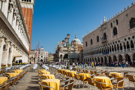 San Marco Square in the morning. This is panoramic image, square composition. Venice or Venezia city, Italy, Europe.