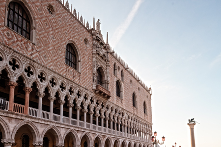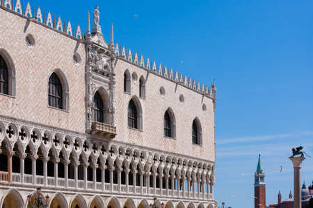 Exterior view of Doge's Palace from Venice, Italy. Italian famous landmark. Gothic architecture
