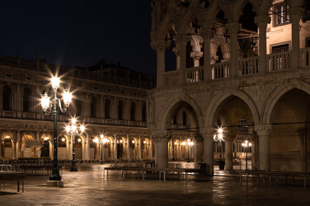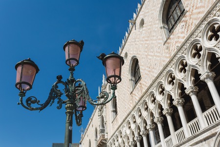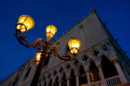 Evening at San Marco square Doge s Palace and antique street-lamp