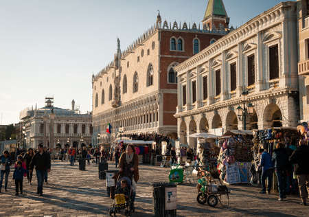 Venice, Itaky - April 27, 2008: People in San Marco square with the Ducale palace on the left