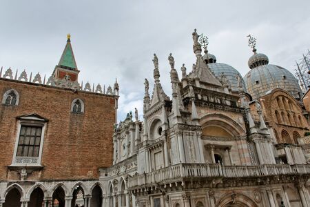 VENICE, ITALY-SEPTEMBER 4, 2018: a fragment of the beauty of St. Marks Basilica and the Doges Palace on St. Marks Square or Square, Venice, Venice, Italy, Europe. Visit in place