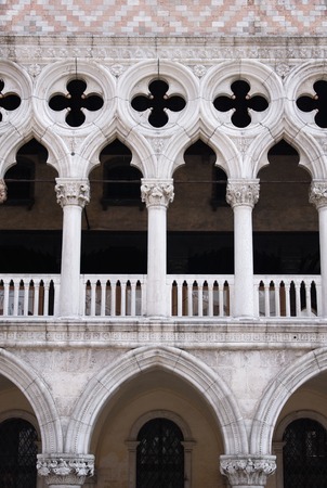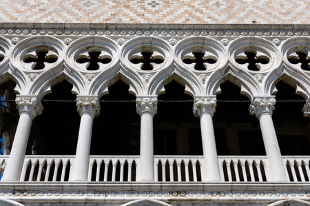 Architectural details of the loggia of the Doge's Palace, in Venice, Italy