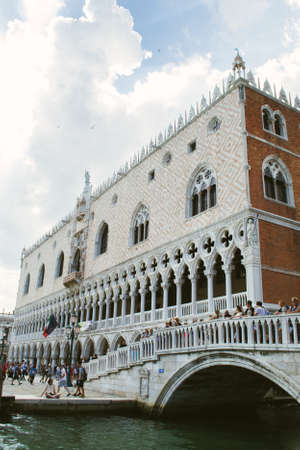The Doge's Palace in Venice, Italy. It is a palace built in Venetian Gothic style, and one of the main landmarks of the city of Venice in northern Italy.