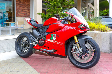 REDMOND, WA - APRIL 29, 2017: Ducati Panigale R Superbike at Exotic car show at Redmond Town Center. The Largest Weekly Gathering Of Exotic Cars In The USA.