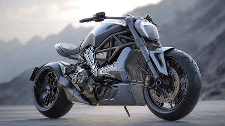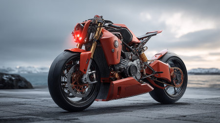 Futuristic Motorbike Design: A Powerful Machine on a Coastal Landscape