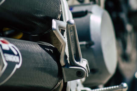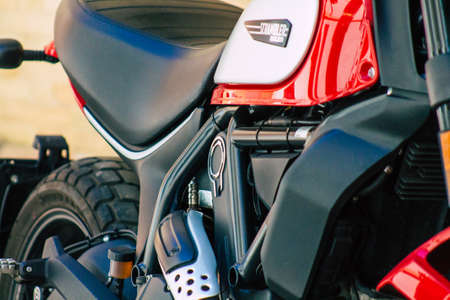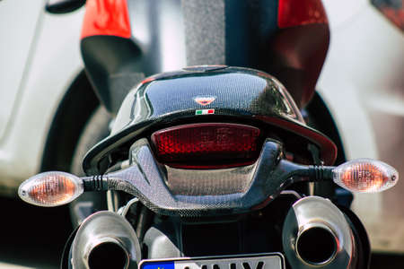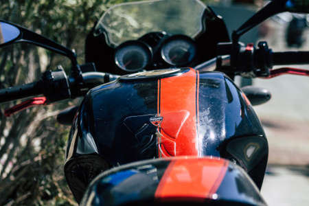 Limassol Cyprus June 26, 2020 Closeup of a Ducati motorcycle parked in the streets of Limassol in Cyprus Island